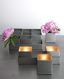 Apartment Therapy posted some gray cubes a while back. They can double as a vase or candle holder. Check them out at Home Port, which also has these tall Gazon vases of hand blown glass.