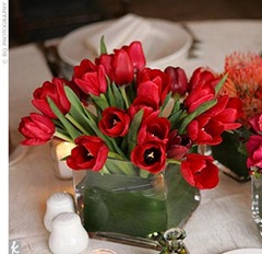The color red immediately reminds us of love. It is a bold color for the passionate. Here are some popular red flowers: roses, peonies, amaryllis, dahlias, tulips, carnations, and gerbera daisies. For some inspiration for using a red flower color theme, check the pictures below.