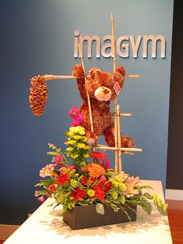 One of our designers, Don, loves to create floral arrangements for Imagym. Imagym, which is also located at CityWalk in Sandy Springs, is a kids play center that focuses on health and physical activity. Don gets really creative with these arrangements and uses all sorts of materials to make them fun and entertaining for the kids and the parents going to Imagym. Here are some of his creations: