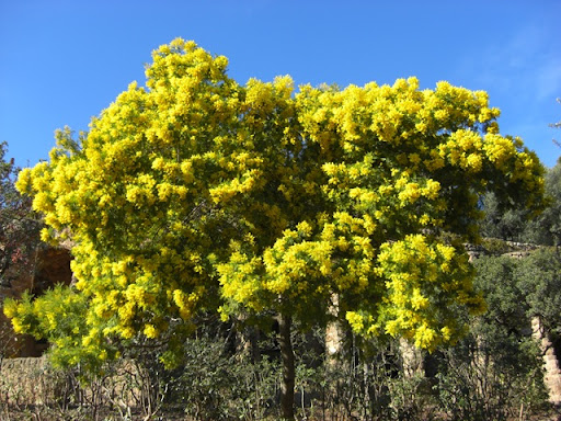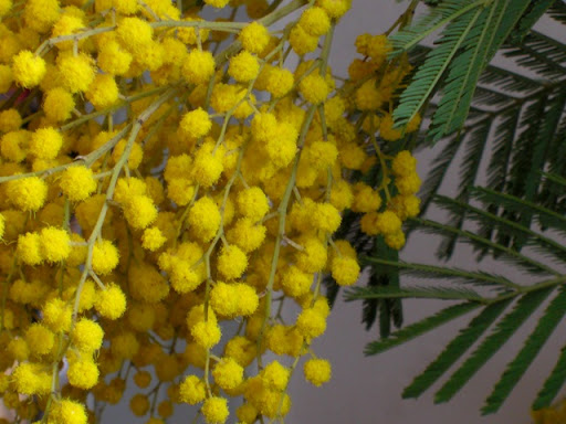 This coming Saturday, March 8th, people around the world will celebrate International Women's Day. Part of the tradition for this day is that women, especially in Italy, receive yellow Mimosa flowers from the people in their lives. So, I figured this would be a good time to introduce the flower. Yellow Mimosa is also (and more correctly) known as Acaia dealbata (silver wattle). It comes from Australia. The flower actually grows on a tree, and the trees are beautiful when they are in bloom.